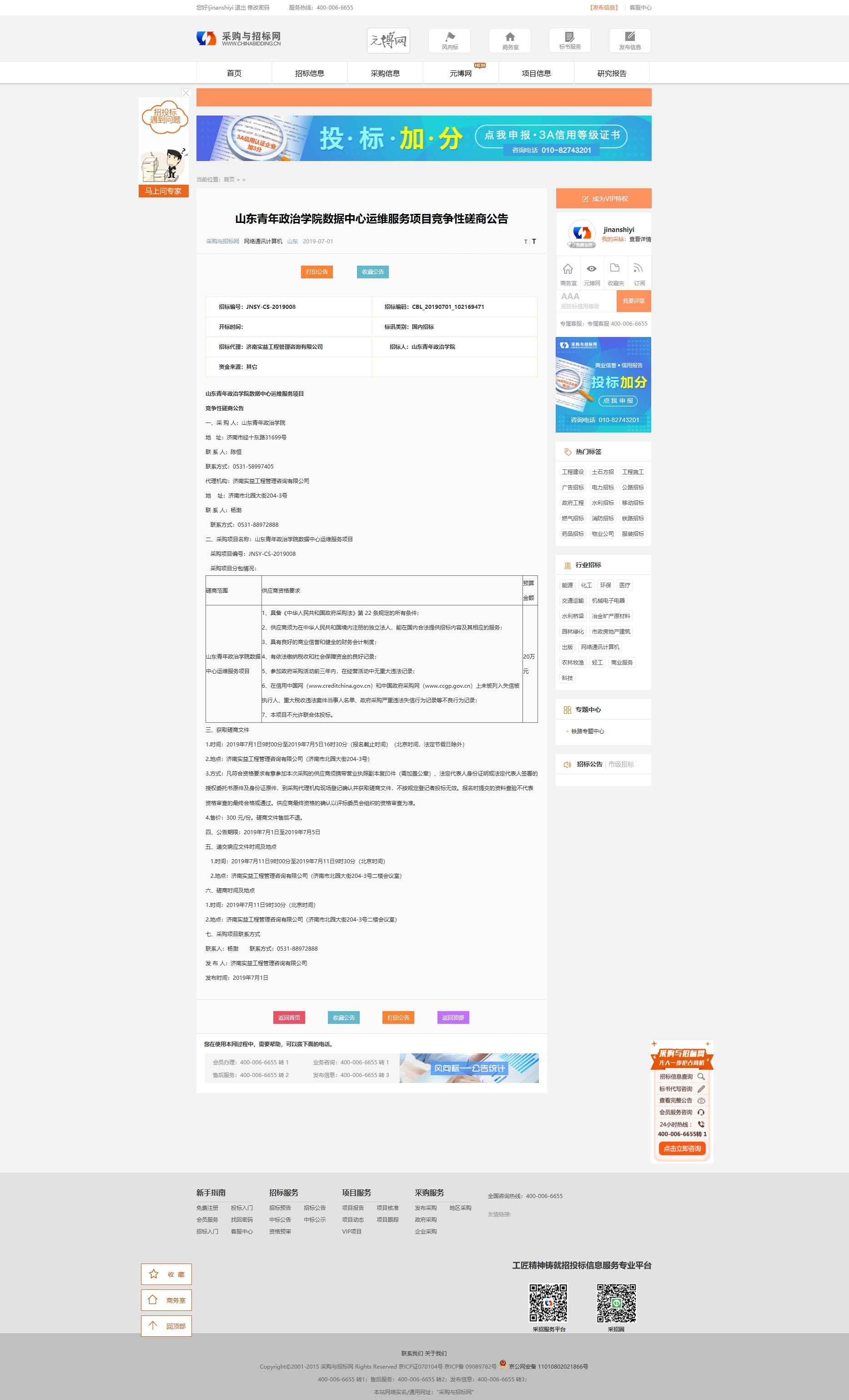 数据中心运维服务项目竞争性磋商公告