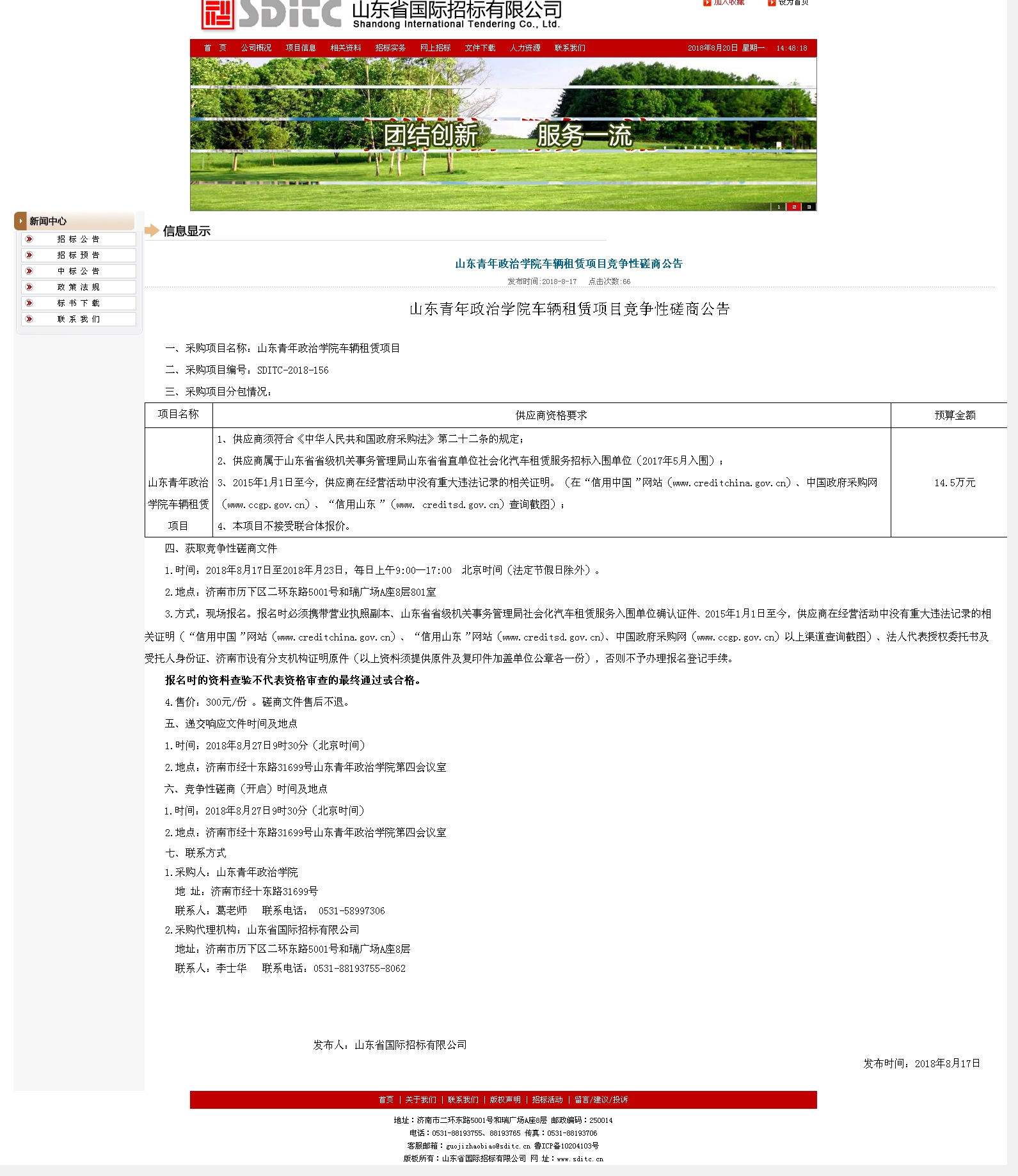 山东青年政治学院车辆租赁项目