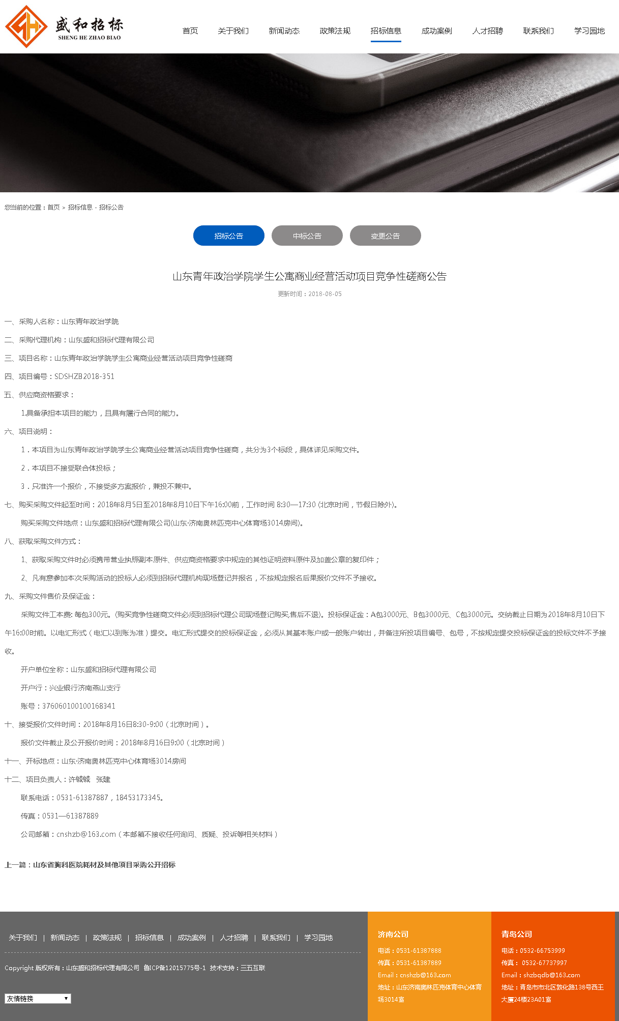 二、采购代理机构:山东盛和招标代理有限公司