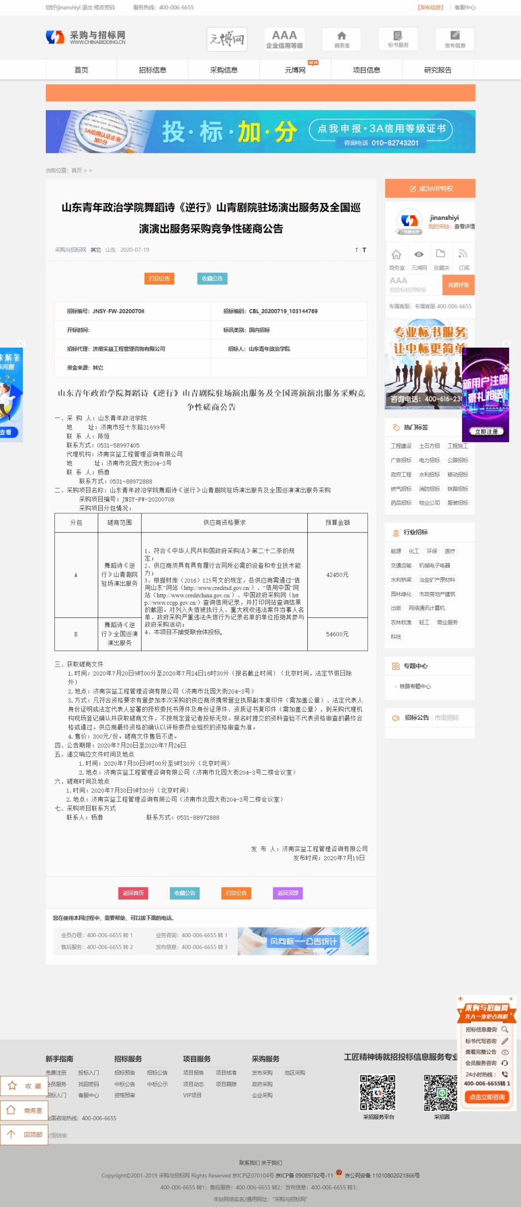 舞蹈诗《逆行》山青剧院驻场演出服务及全国巡演演出服务采购竞争性磋商公告