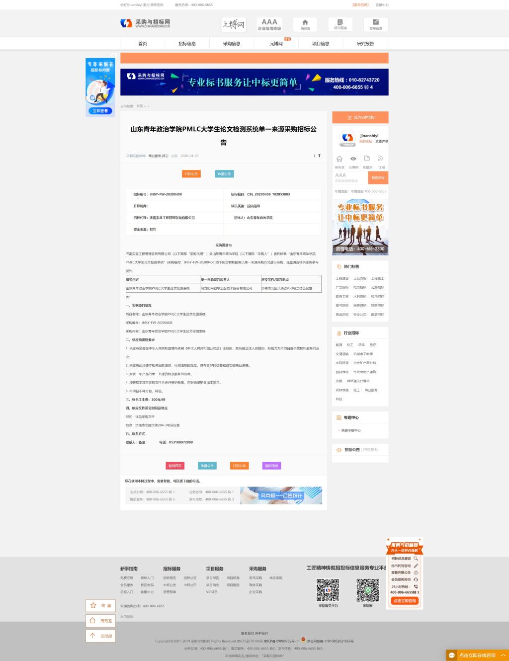 PMLC大学生论文检测系统单一来源采购公告
