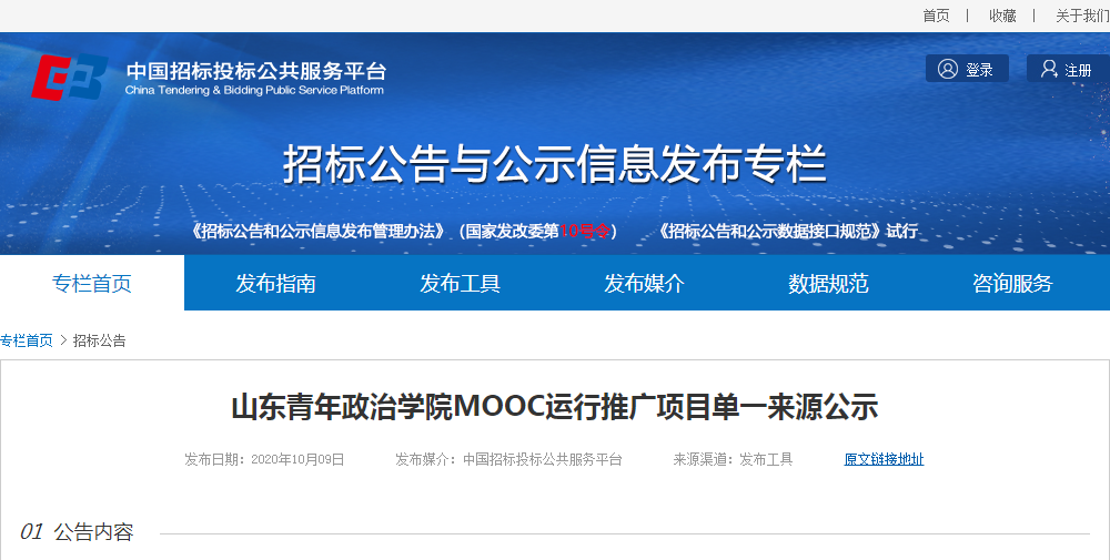 MOOC运行推广项目单一来源采购公告