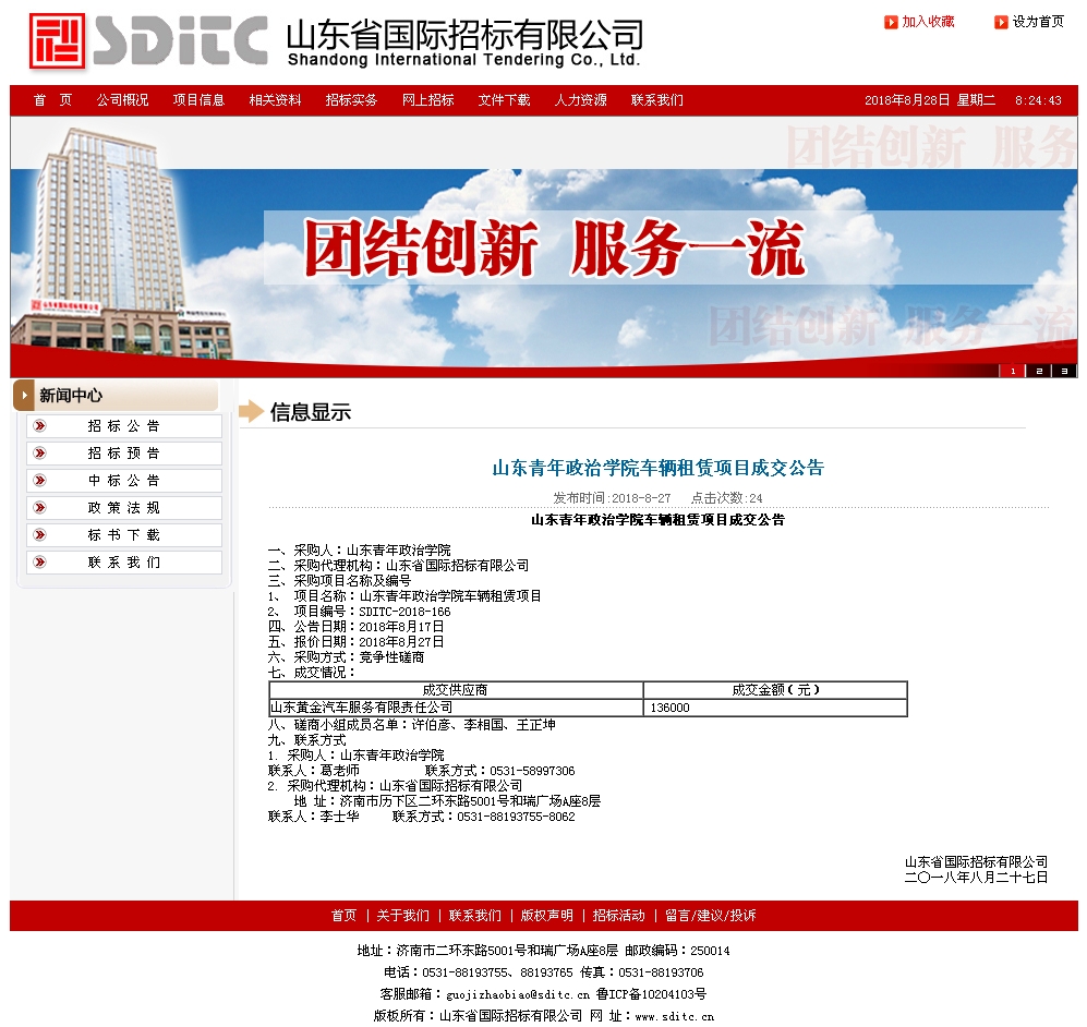 | 三、 项目名称:山东青年政治学院车辆租赁项目