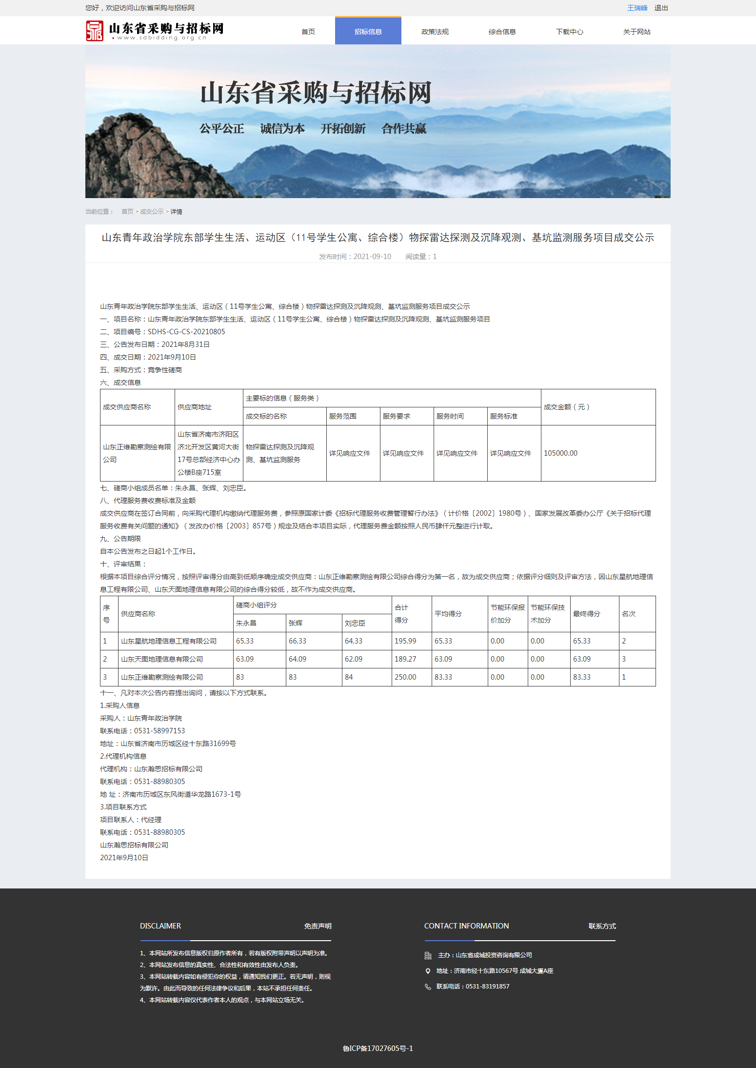 山东青年政治学院东部学生生活、运动区(11号学生公寓、综合楼)物探雷达探测及沉降观测、基坑监测服务项目成交公式